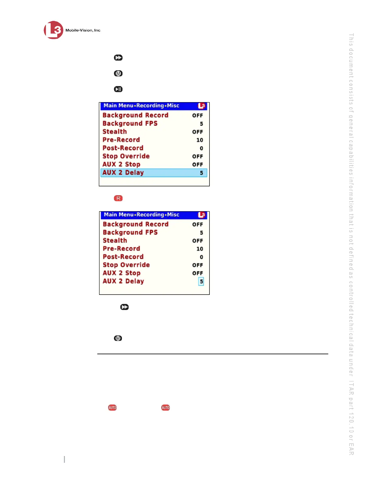 ress to advance to the AUX 2 Delay field.