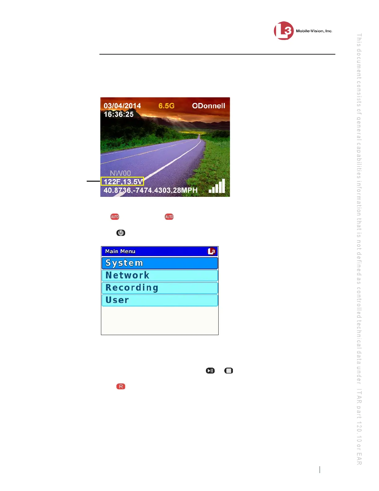 or off, as shown below. This indicator displays the DVR’s internal voltage. By