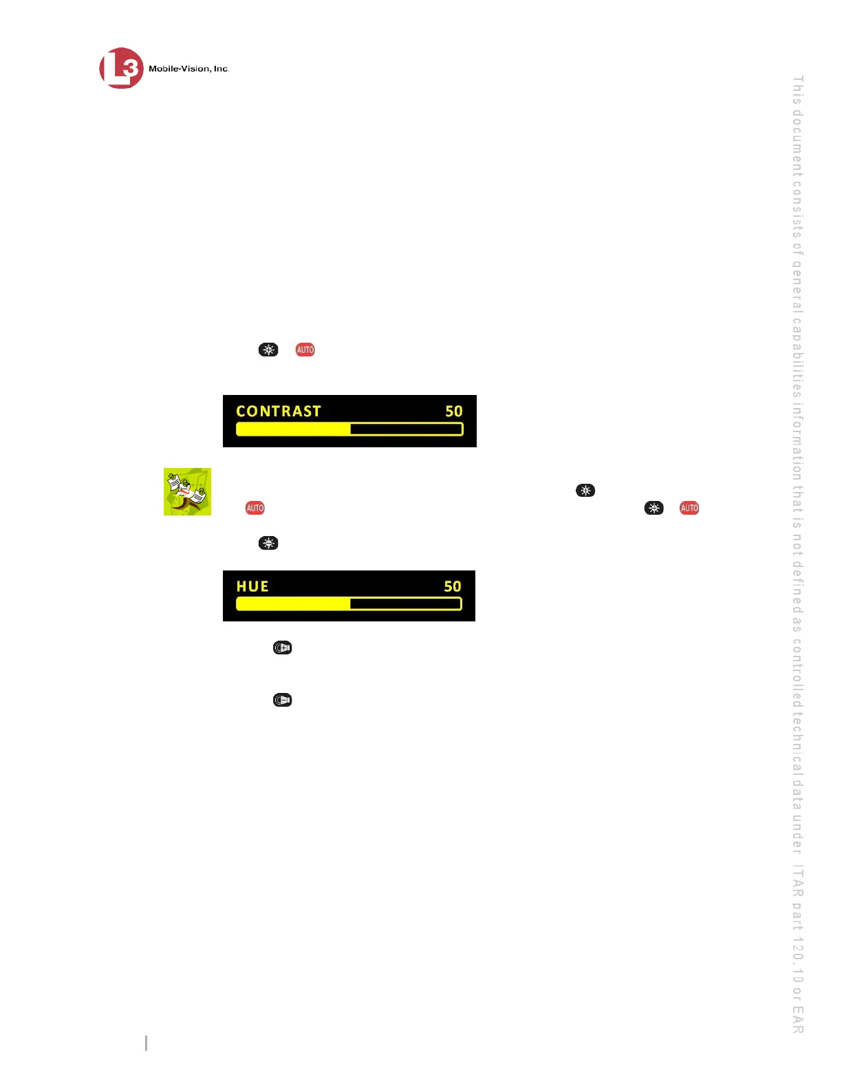 This section describes how to adjust the hue setting for your Flashback monitor.