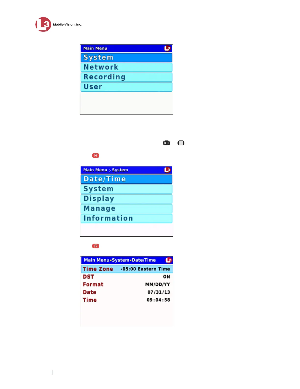 to select the Date/Time option. The Date/Time screen displays.