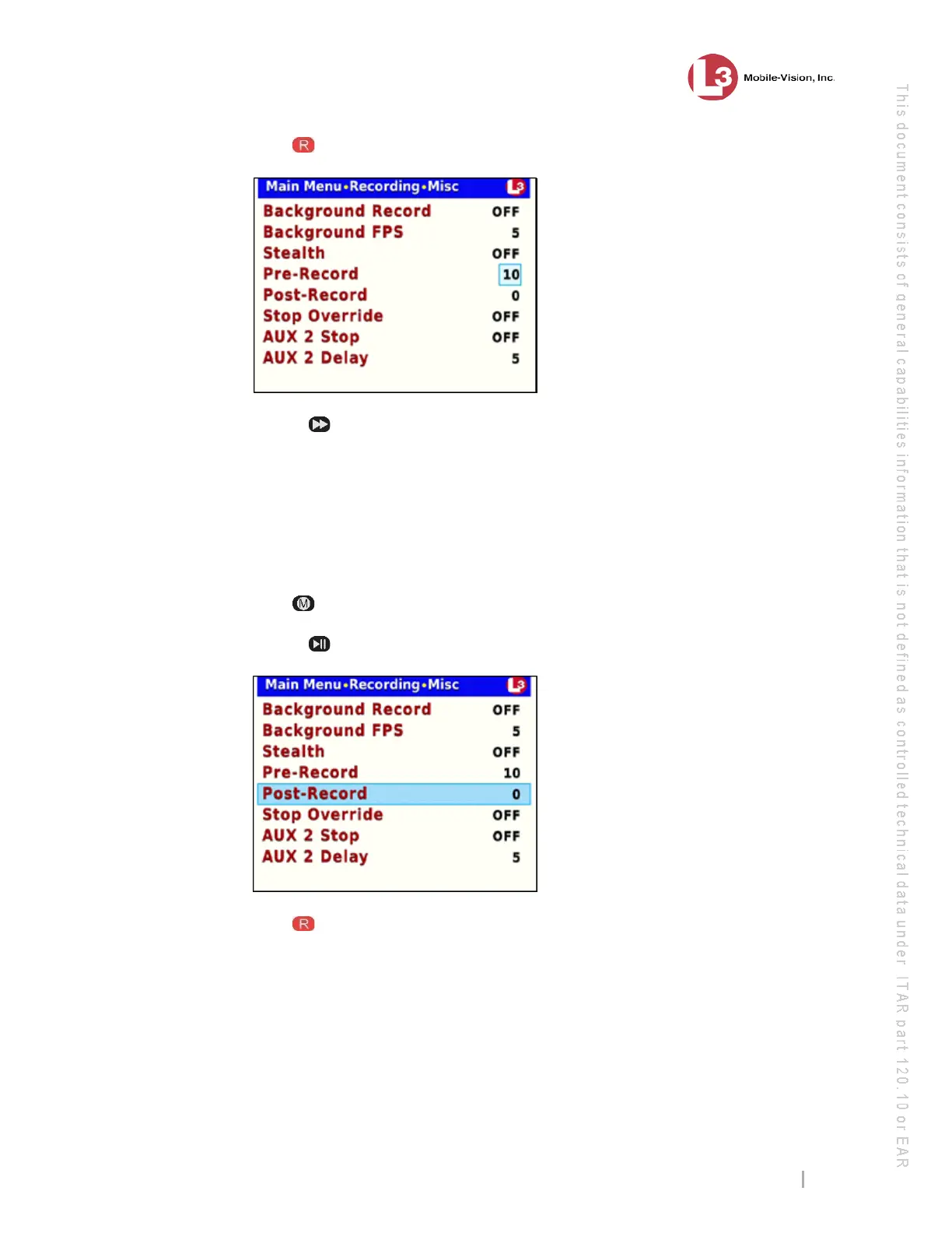 se the button to advance to the Post-Record field.