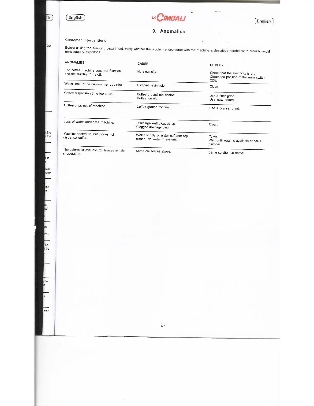 La Cimbali M2 Barsystem - Troubleshooting Machine Anomalies; Pre-Call Service Checks; Common Anomalies and Remedies