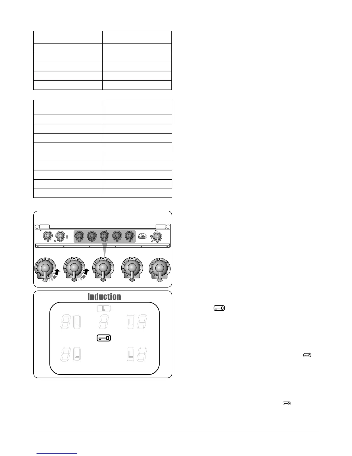 To lock the hob, simultaneously turn the two left-hand hob