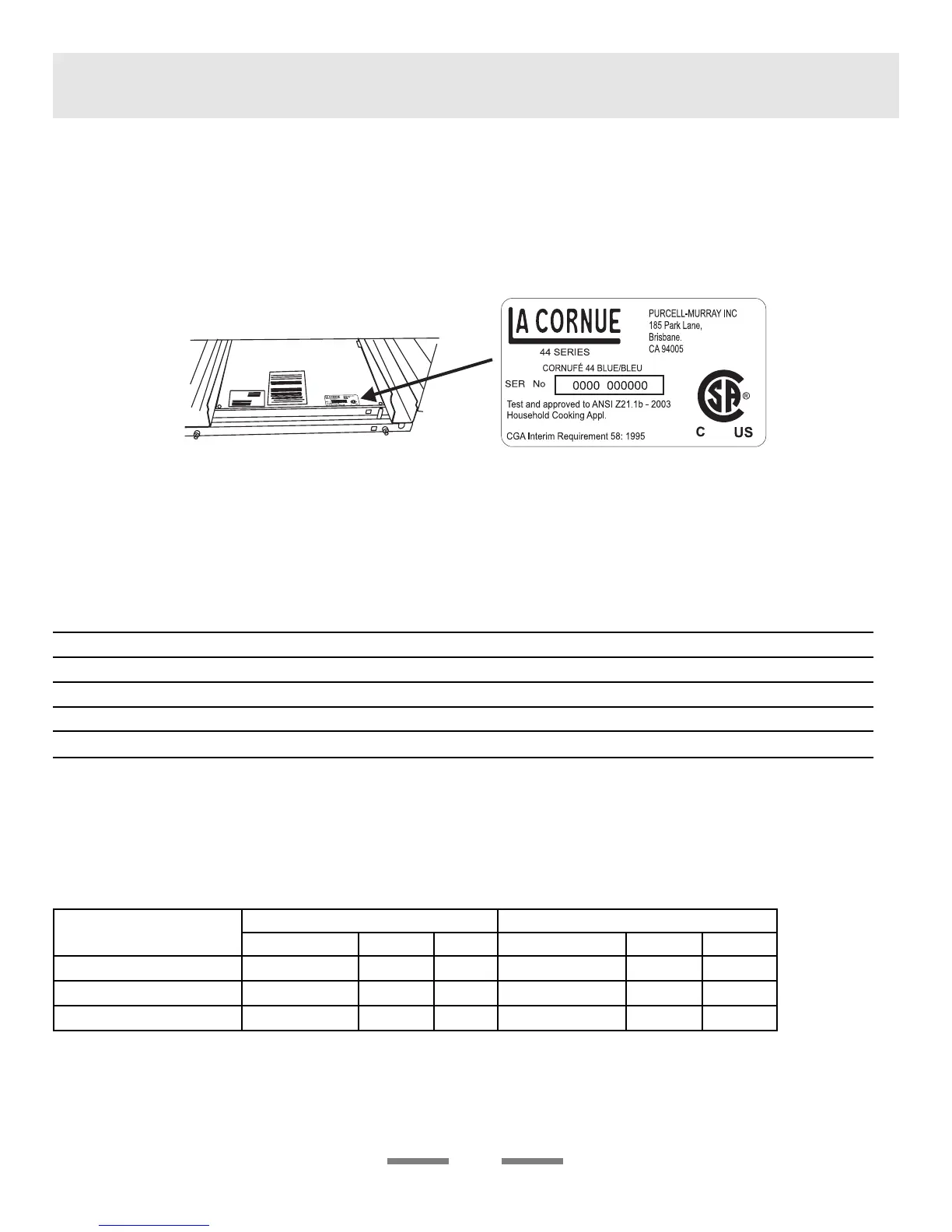 Right hand front Burner 6,000 Btu/hr 112 53 6,000 Btu/hr 68 31