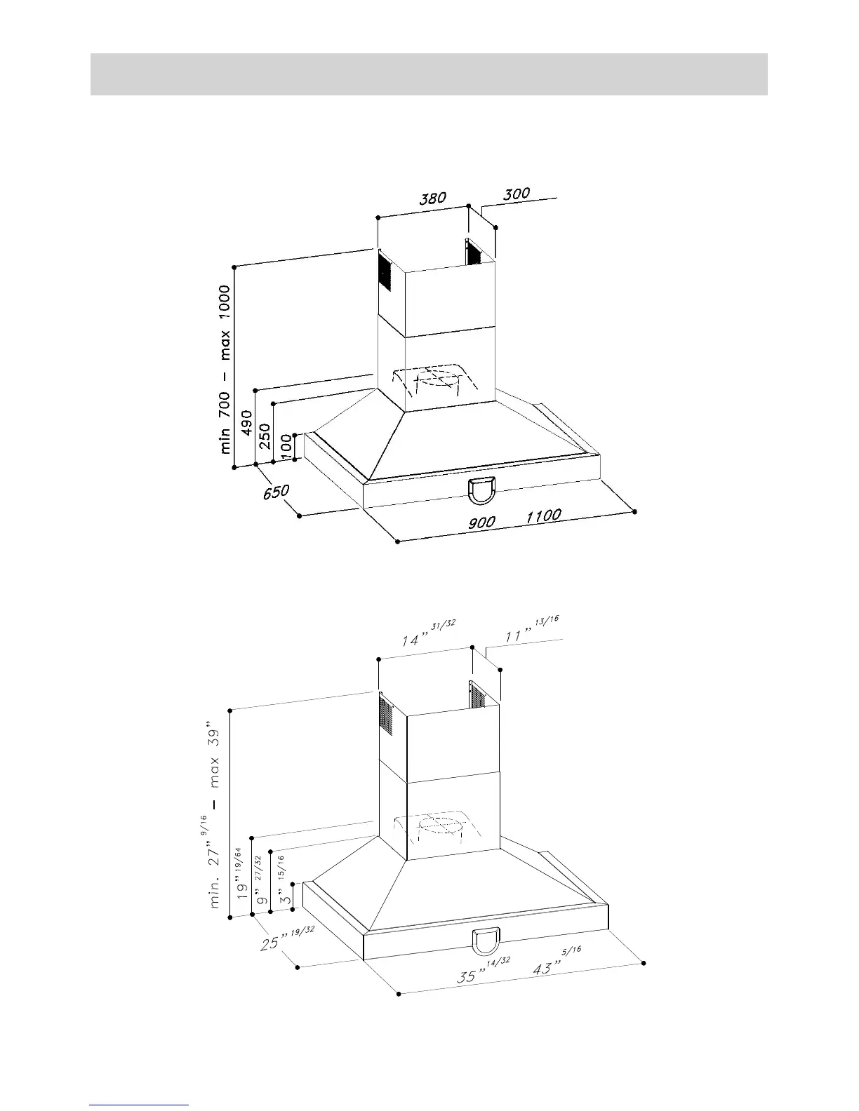 DIMENSIONS AND TECHNICAL SKETCH OF THE HOOD
