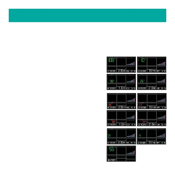 1.Pressez et relâchez le bouton « TEMP » pour voir vos maximums (HI) et minimums (LO) enregistrés, ainsi