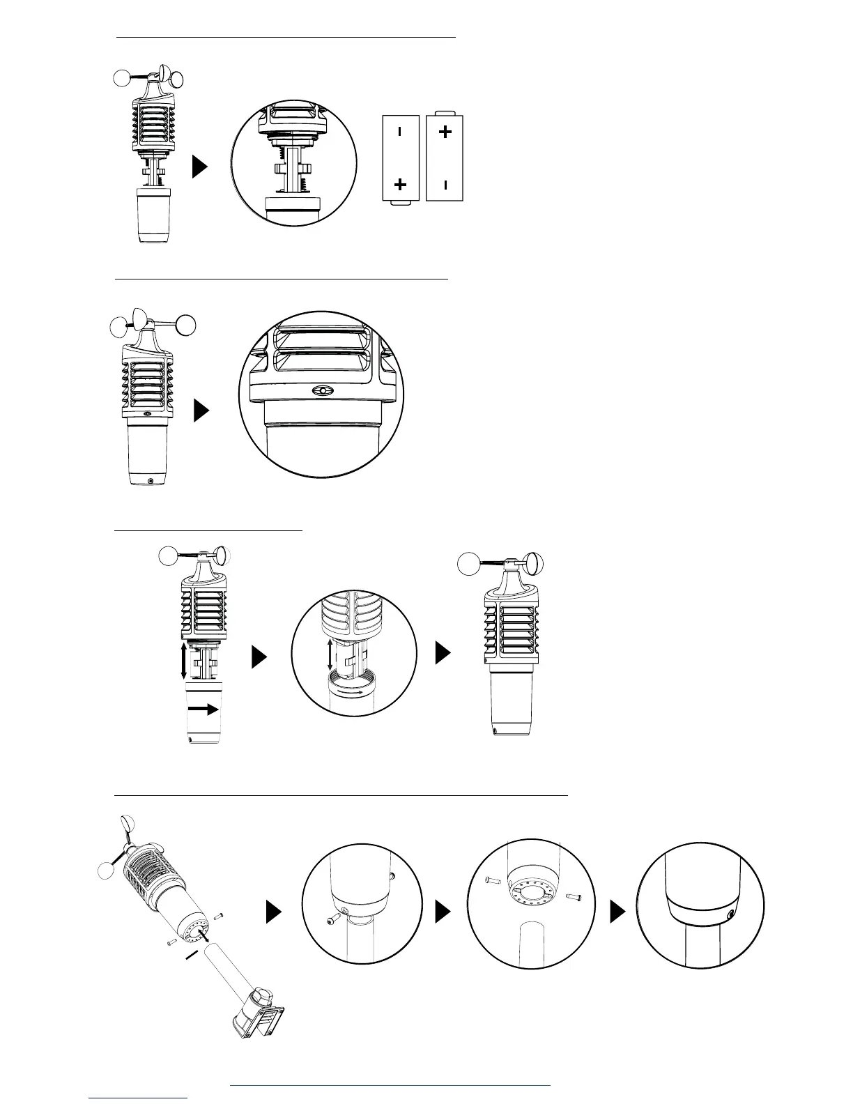 5. Insert pole into bottom of sensor and secure with two screws.