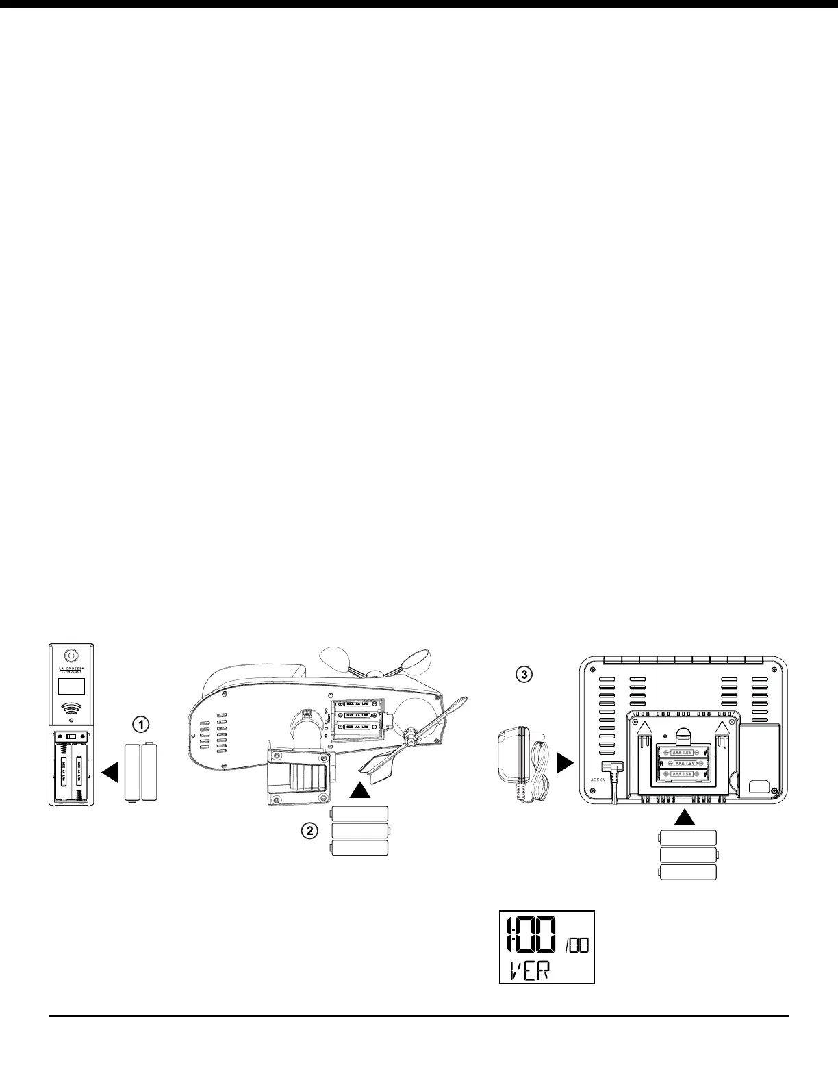 1. Power up. Insert 2-AA batteries into the outdoor Thermo-hygro sensor, 3-AA batteries