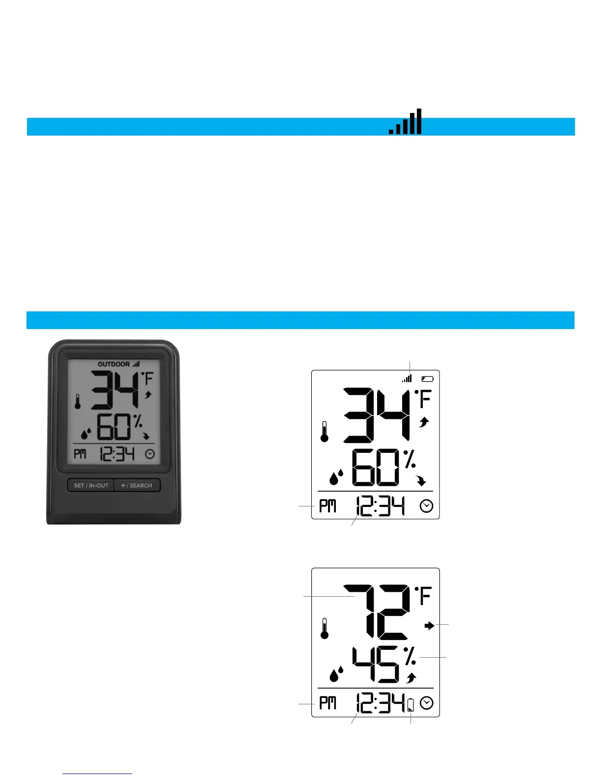 • If the signal is lost, the RX will display the ast data recorded from sensor for 10 minutes.