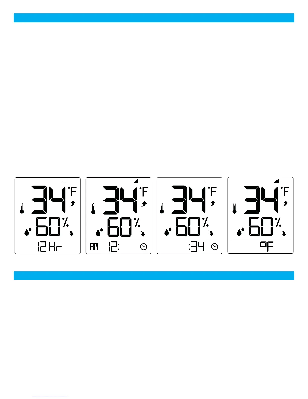 1. Hold the SET/IN-OUT button for 3 seconds. 12Hr will flash. Press and release the +/SEARCH button if you