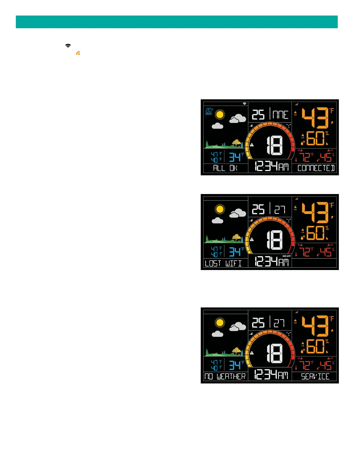 • The Internet Icons by your Forecast, Wind Direction and HI/LO Temperatures will indicate connection to
