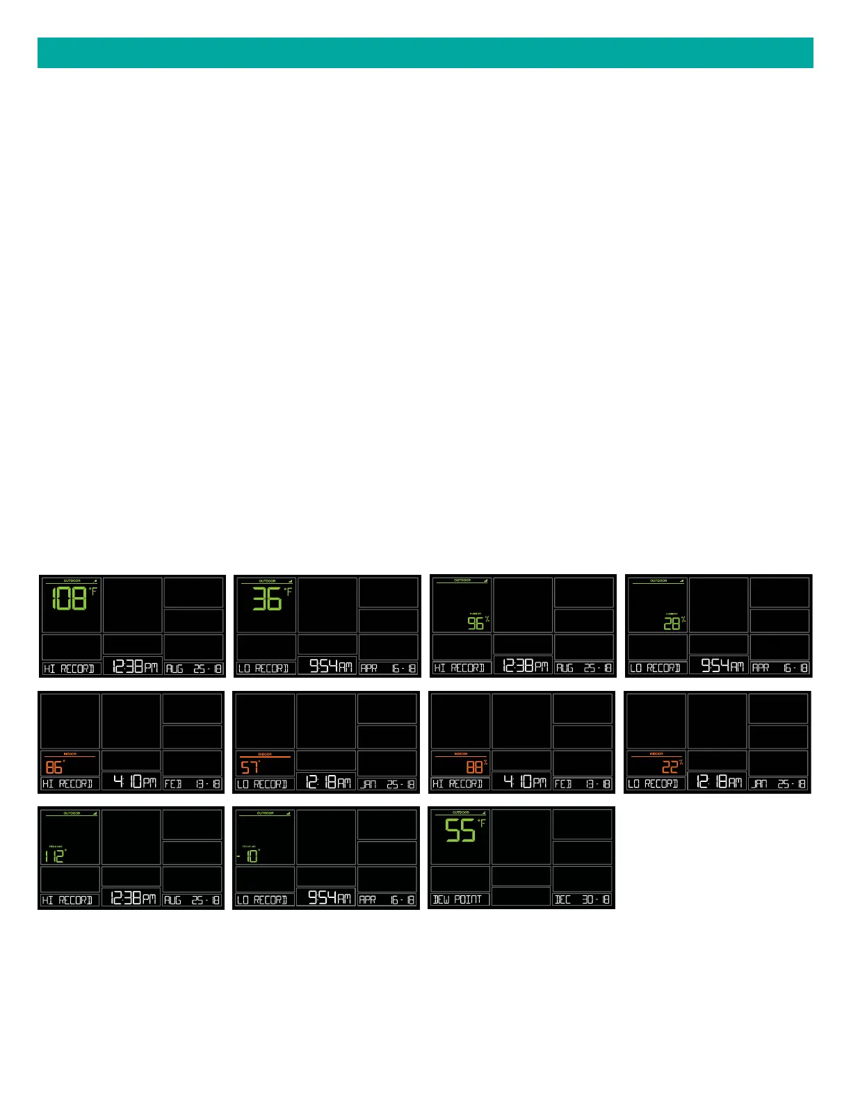 TEMPERATURE/HUMIDITY READINGS & HI/LO RECORDS