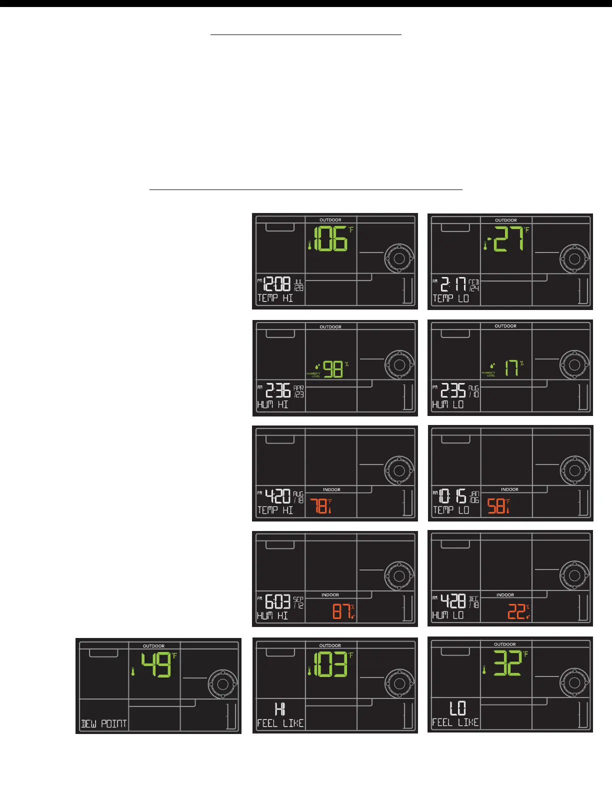 • Outdoor HI Humidity with Time/Date