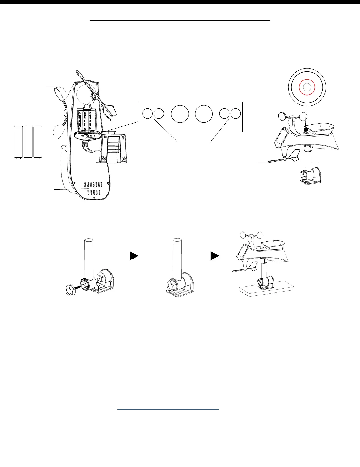 3. Use the bubble level on top of the sensor to ensure it is level, for accurate rainfall readings.