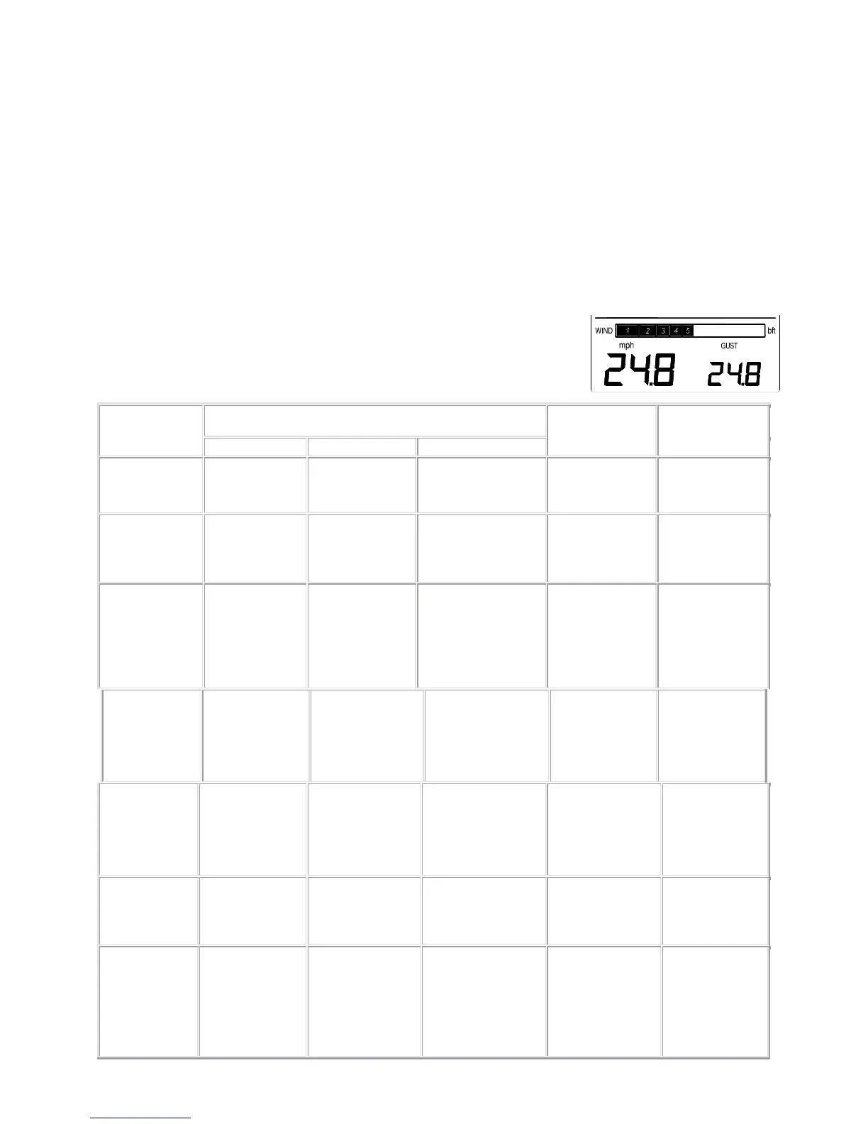 4. The WIND SPEED LCD will now show the maximum wind gust.