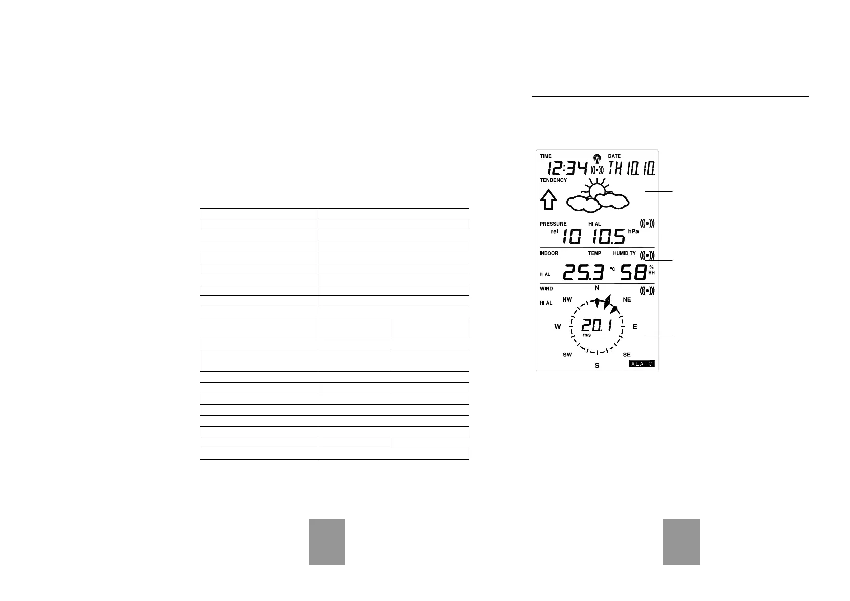 Indoor temperature alarm 10.0ºC (low) 30.0ºC (high)