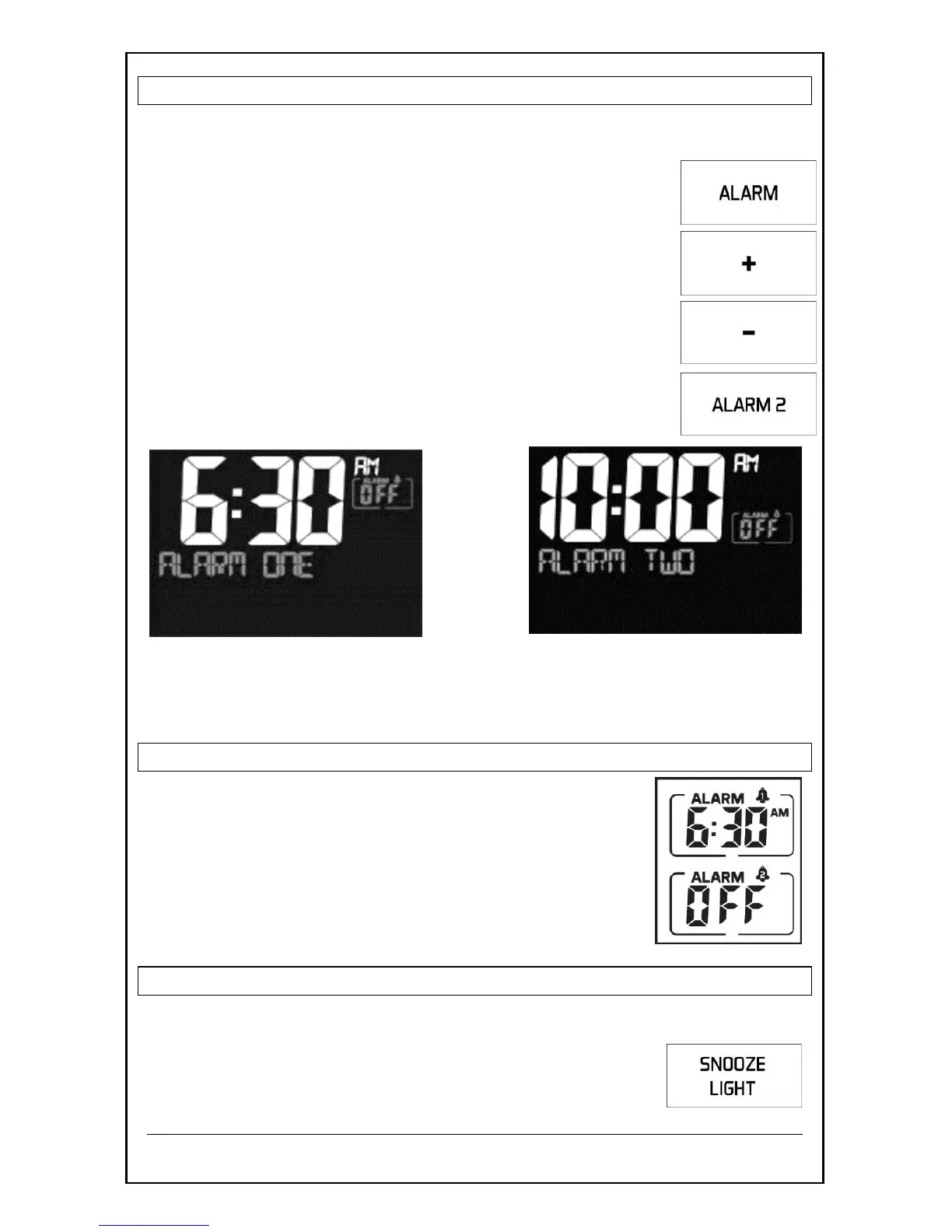 When alarm sounds, press the SNOOZE/LIGHT button to silence the