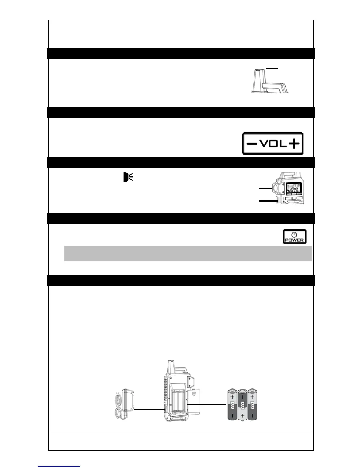 1. Insert the included 6V AC power cord into the wall and into the radio.