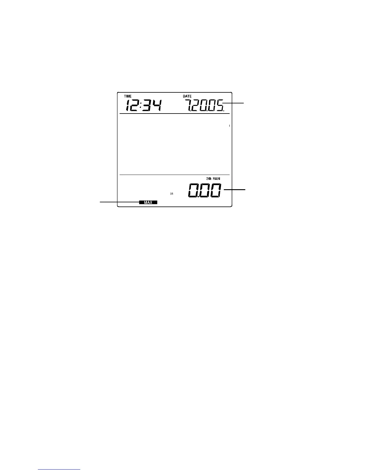 The total rainfall measurement is displayed in the last section of the LCD, in the unit of mm