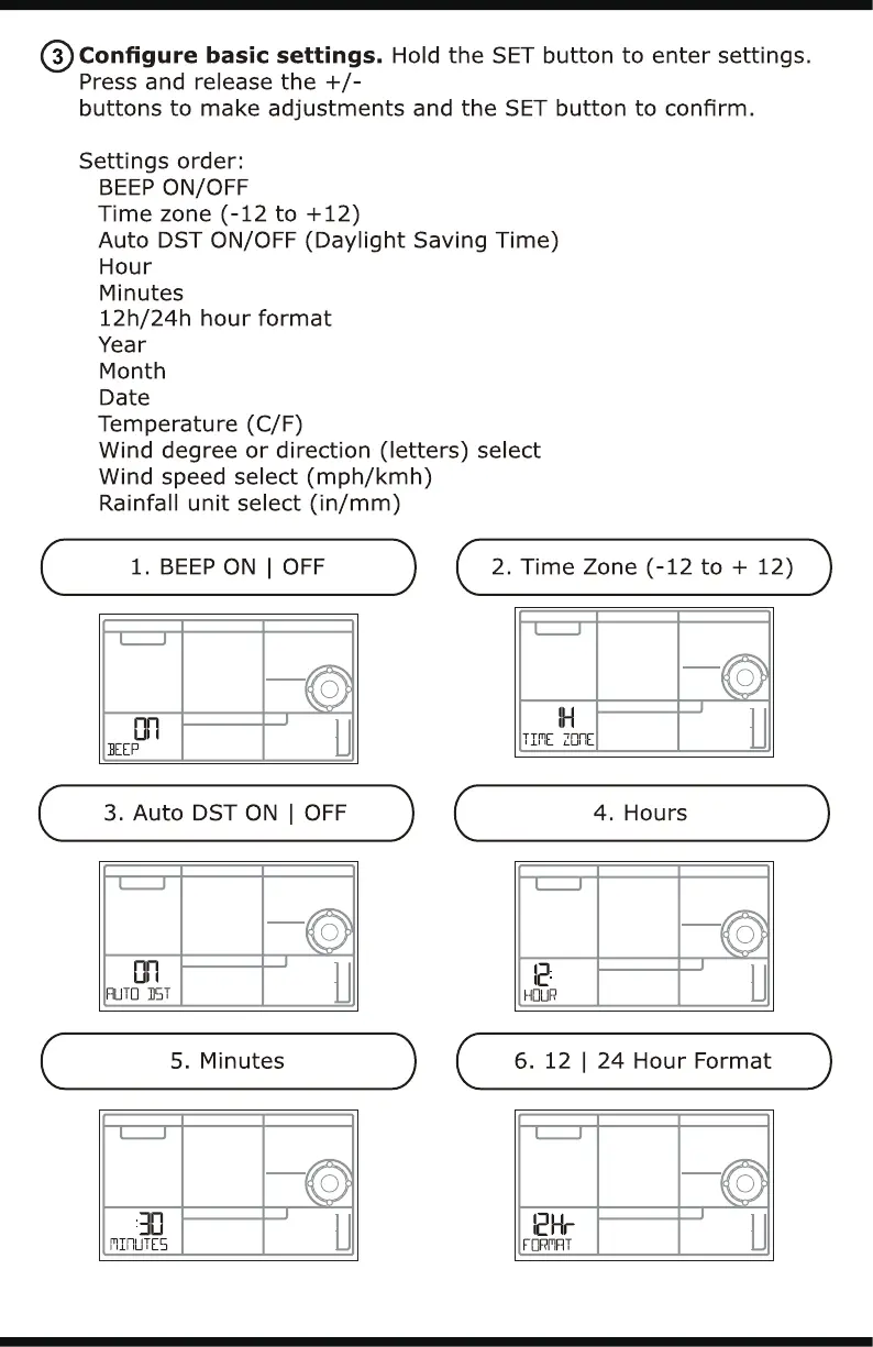La Crosse WS6867 - Configure Basic Settings; Settings Order