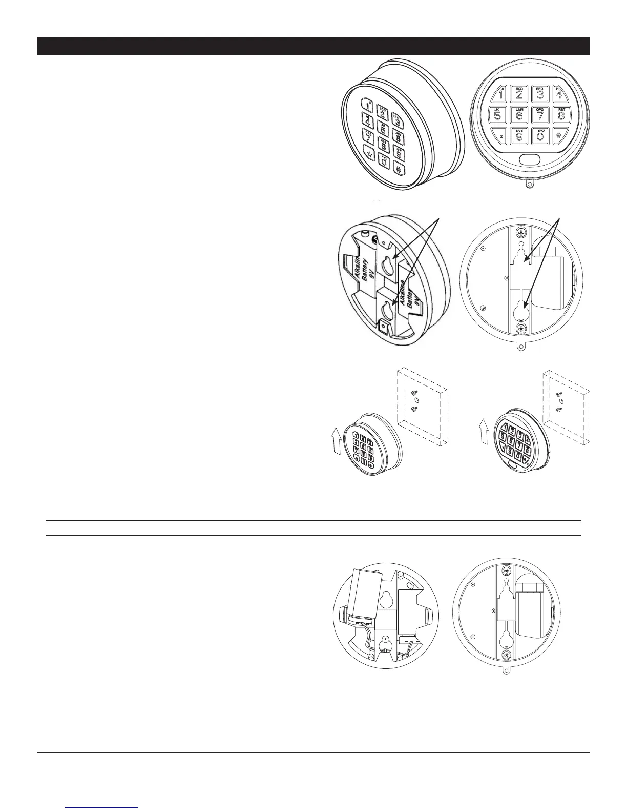 1.Slidethekeypadhousingupandcarefullypullawayfrommountingsurfacetoexposebatterycompartment.