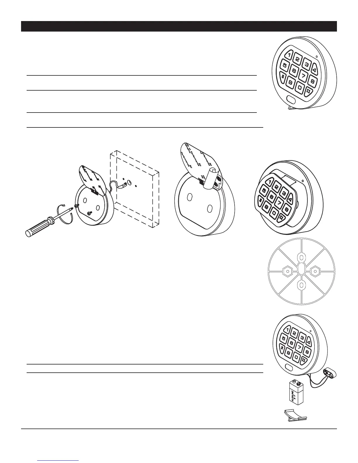 WARNING: Once installed, the Entry Device cannot be removed from the safe door without causing
