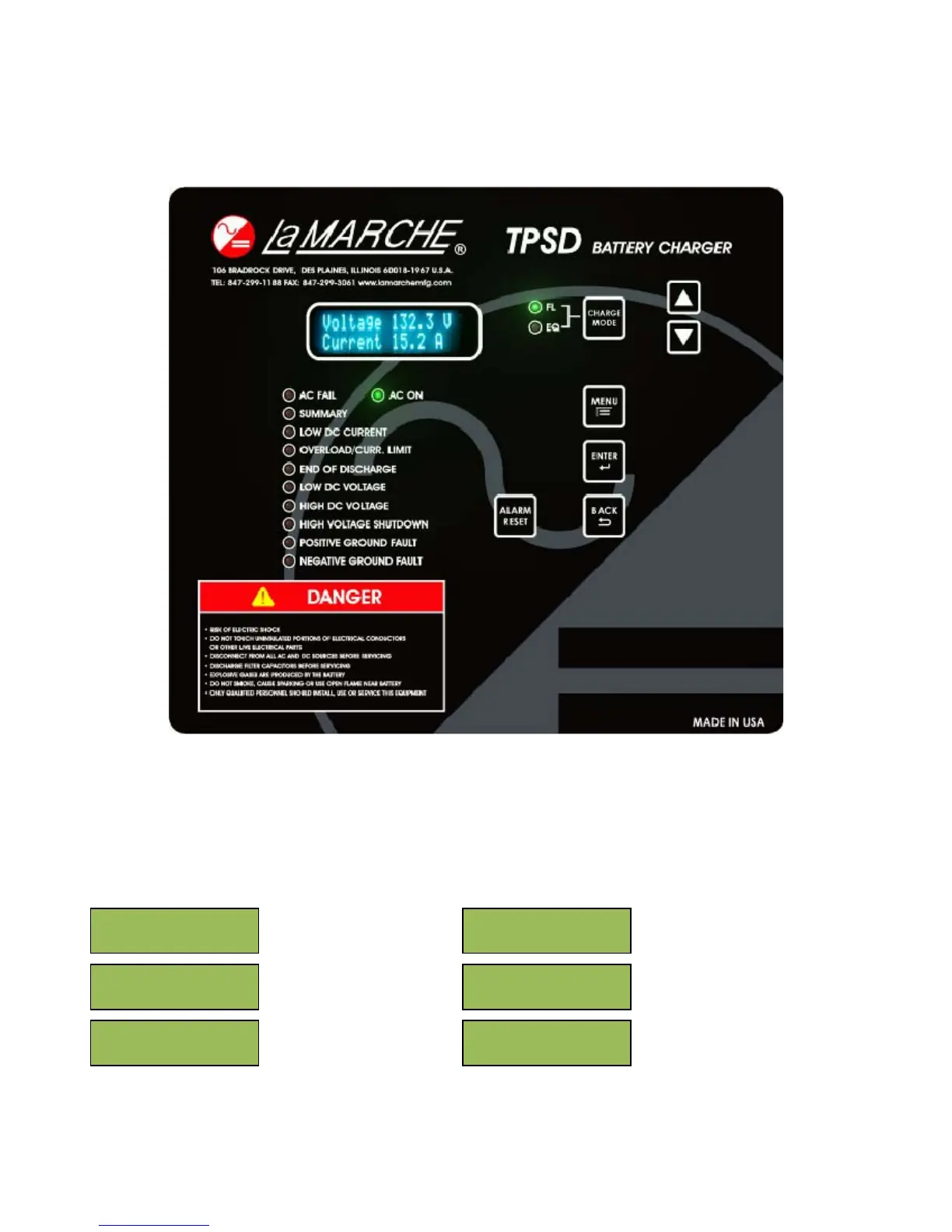 After the TPSD has completed the startup sequence, “AC ON” and “FL” green LED indicators on the front panel