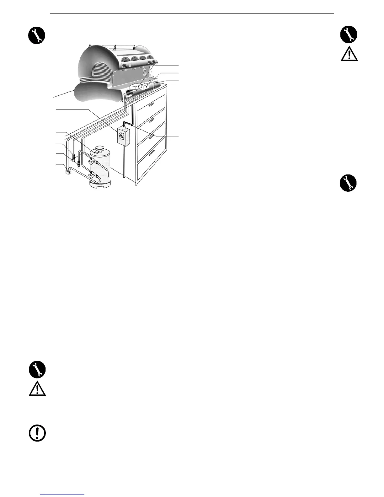 Conectar la válvula gas (H) a la tubería (C) mediante un tubo de goma
