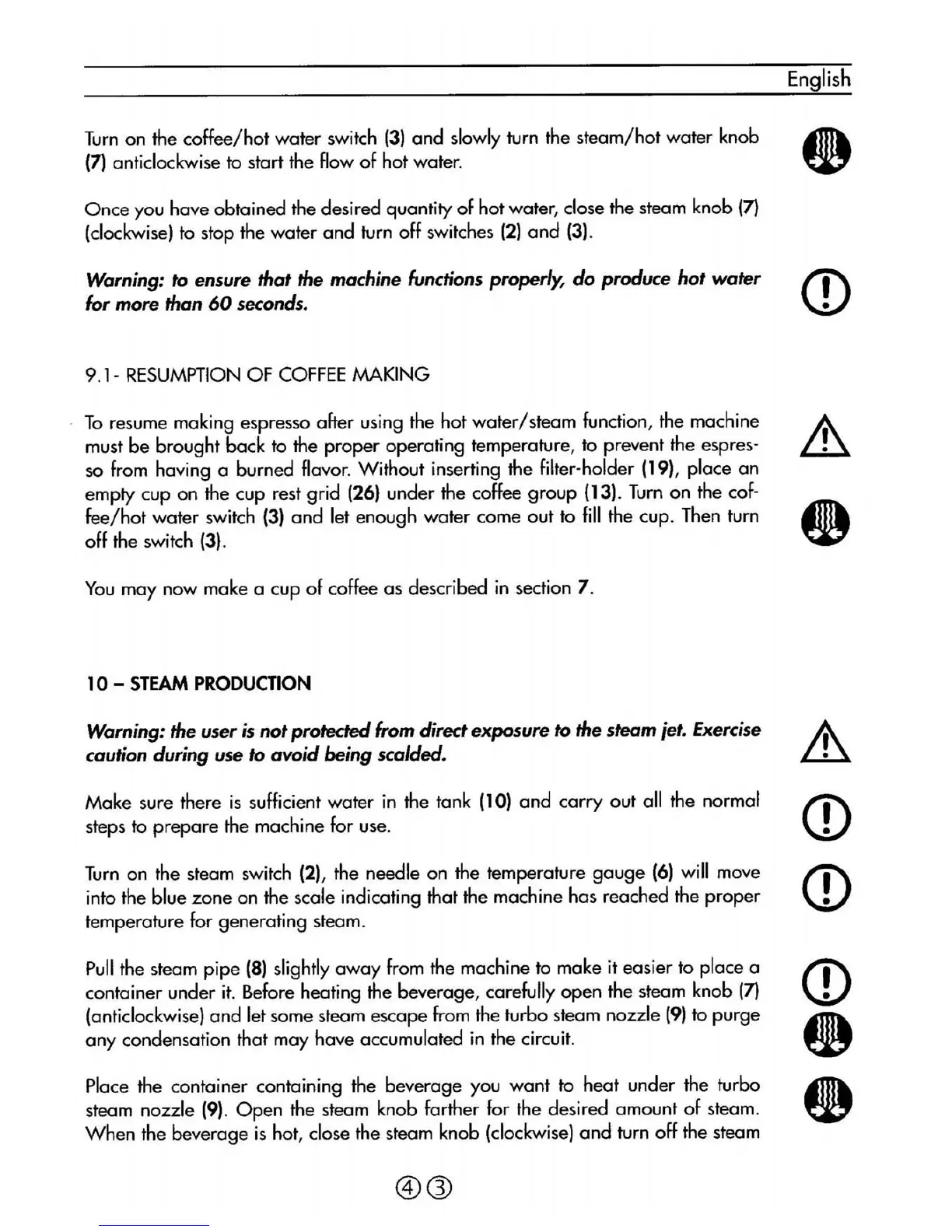 La Pavoni Cellini - RESUMPTION OF COFFEE MAKING; STEAM PRODUCTION