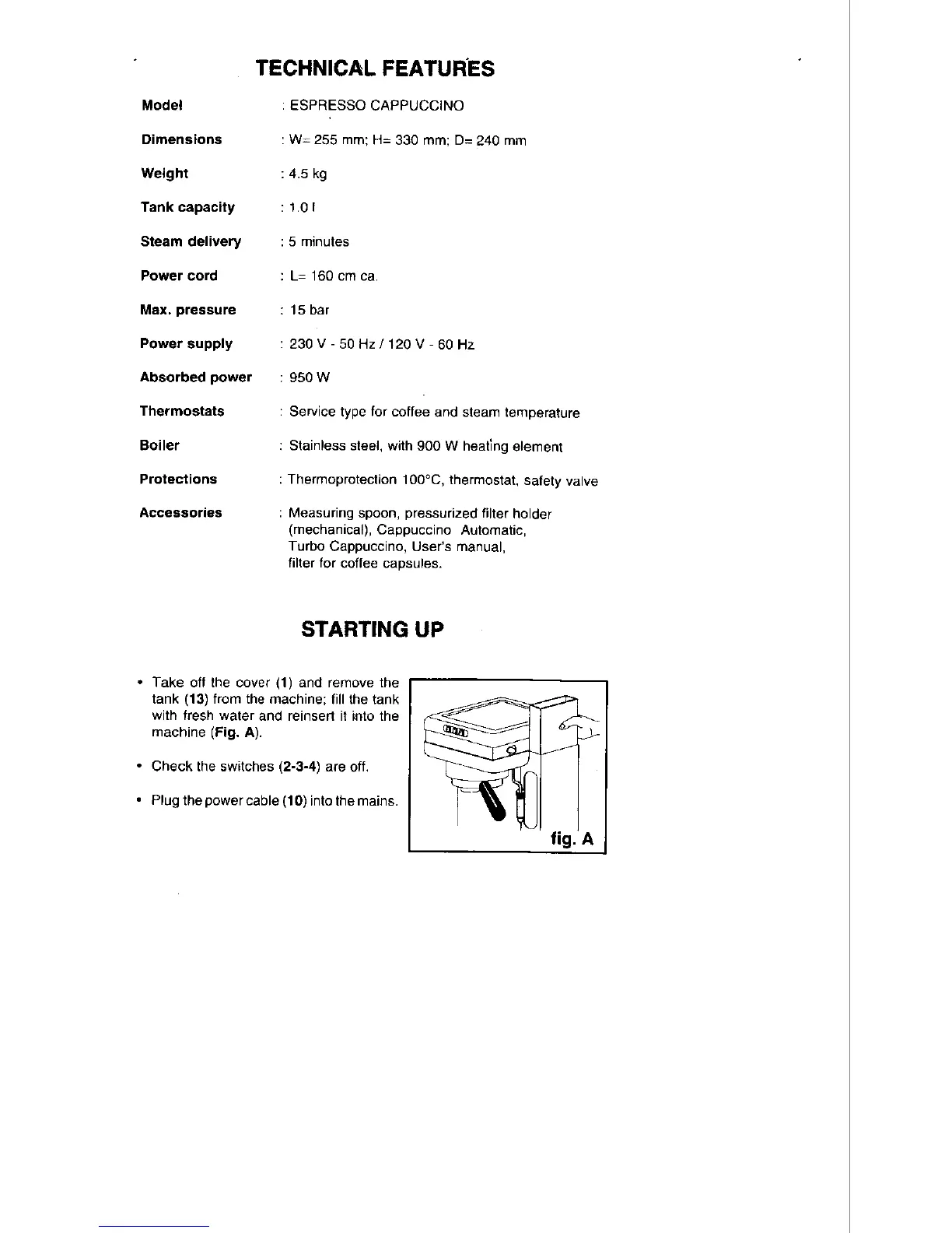 La Pavoni ECN - Technical Features; Starting up