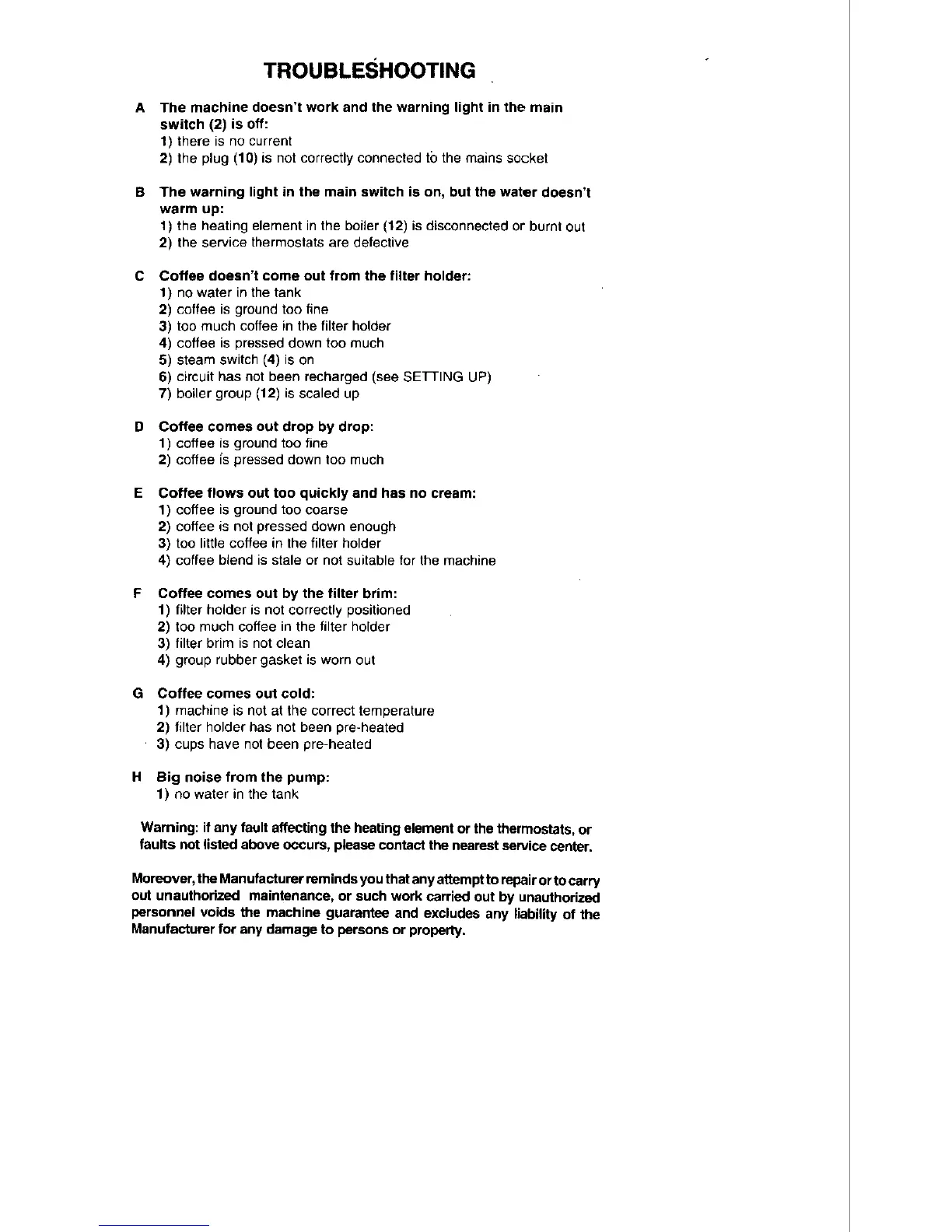 La Pavoni ECN - Troubleshooting
