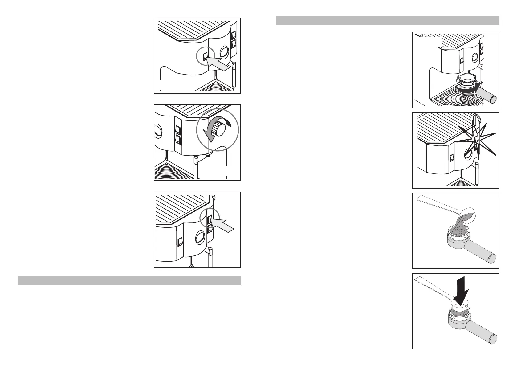 • Zum Vorwärmen den Siebträger (6) durch Drehen von links