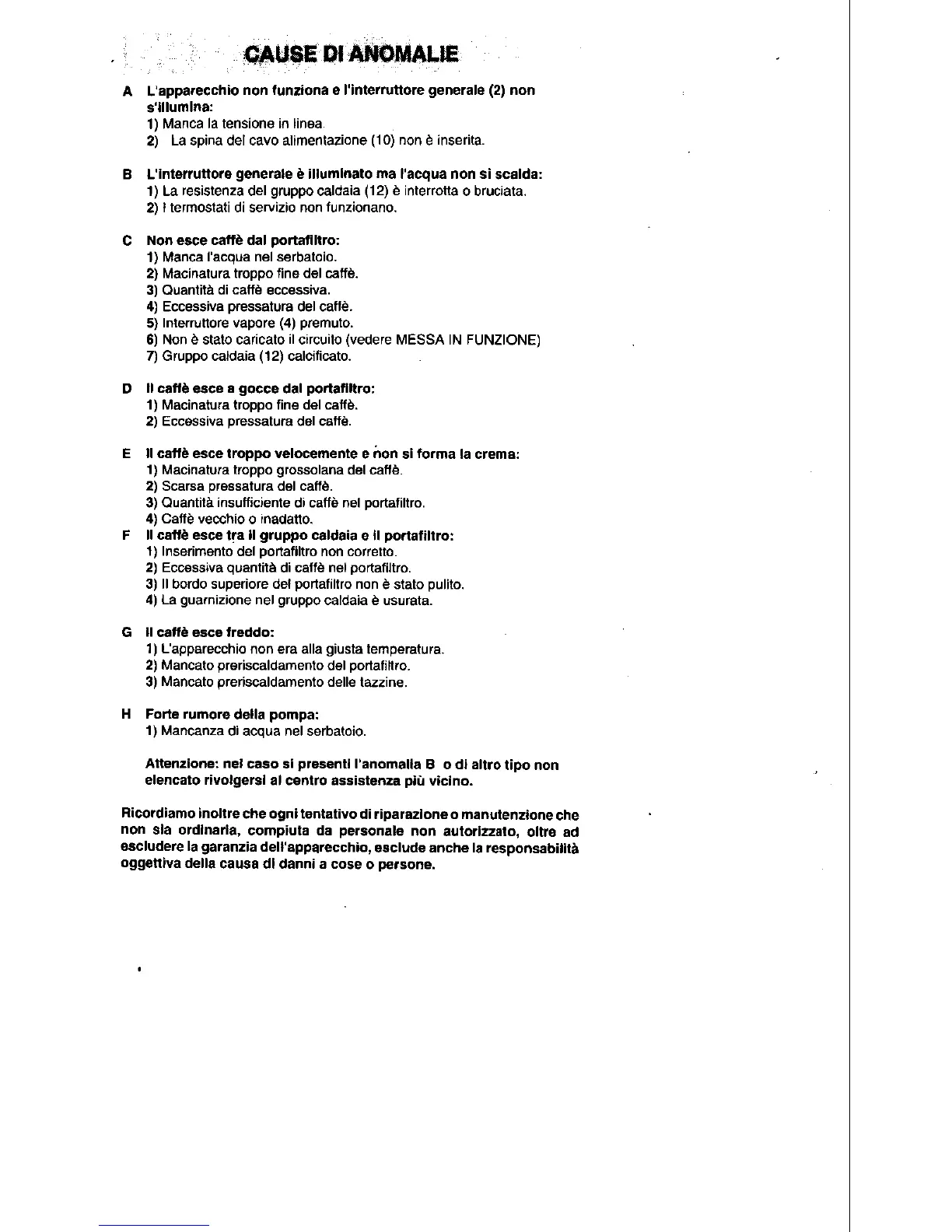 La Pavoni Espresso Plus - CAUSE DI ANOMALIE