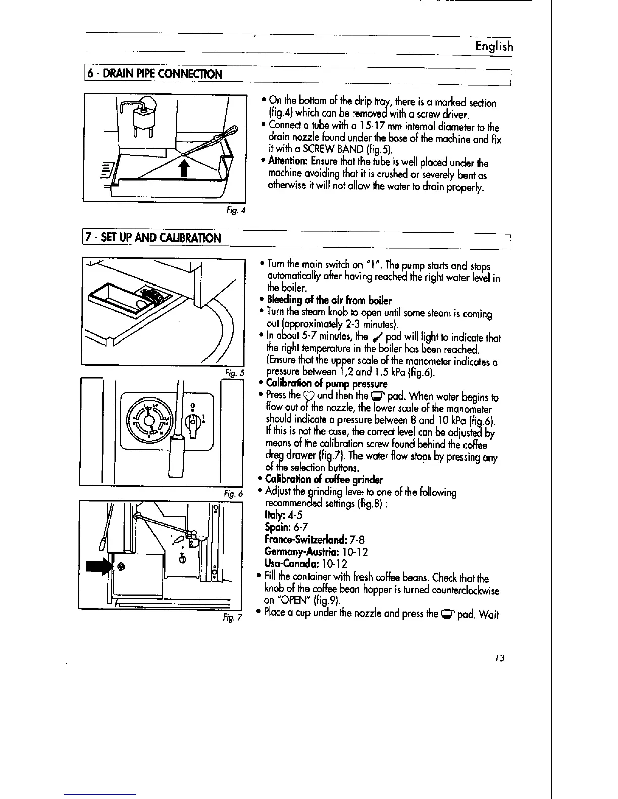 La Pavoni Pub Automatic - Drain Pipe Connection; Setup and Calibration; Boiler Air Bleeding; Pump Pressure Calibration