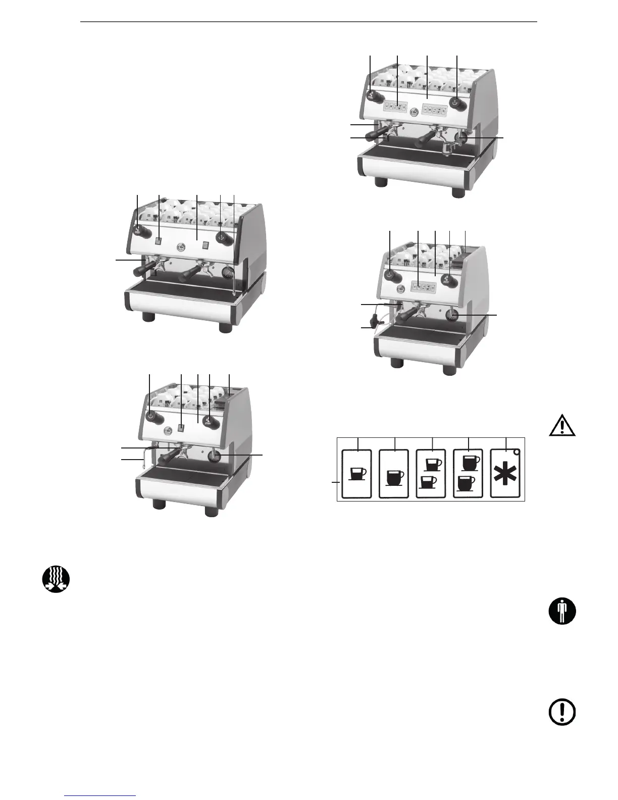 4 selezioni dose caffè e tasto di stop per ogni gruppo.