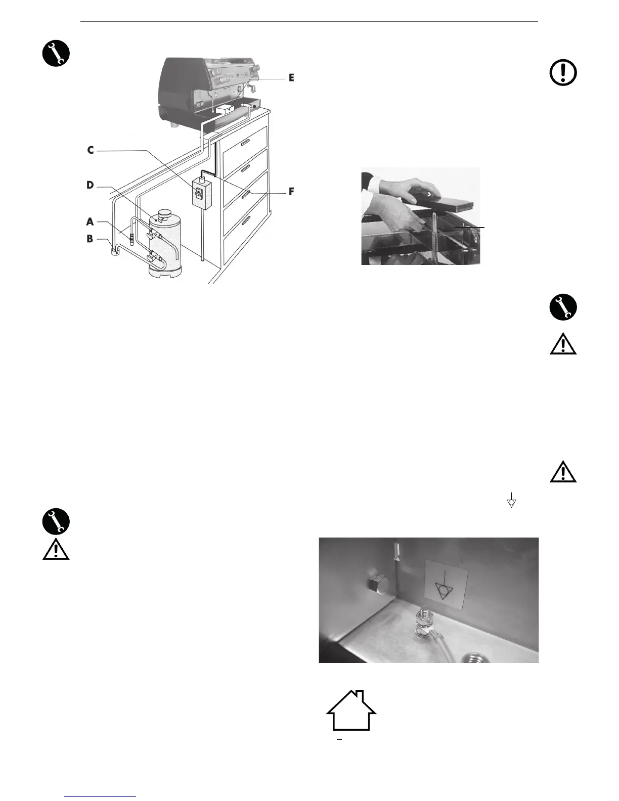 Conectar el cable de alimentación (F) a la línea eléctrica mediante
