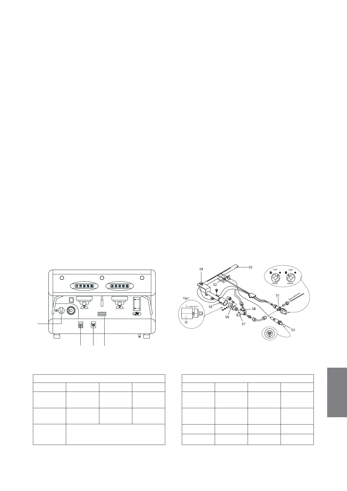 Tabela 1 - Regulação do ar primário (Fig. C)
