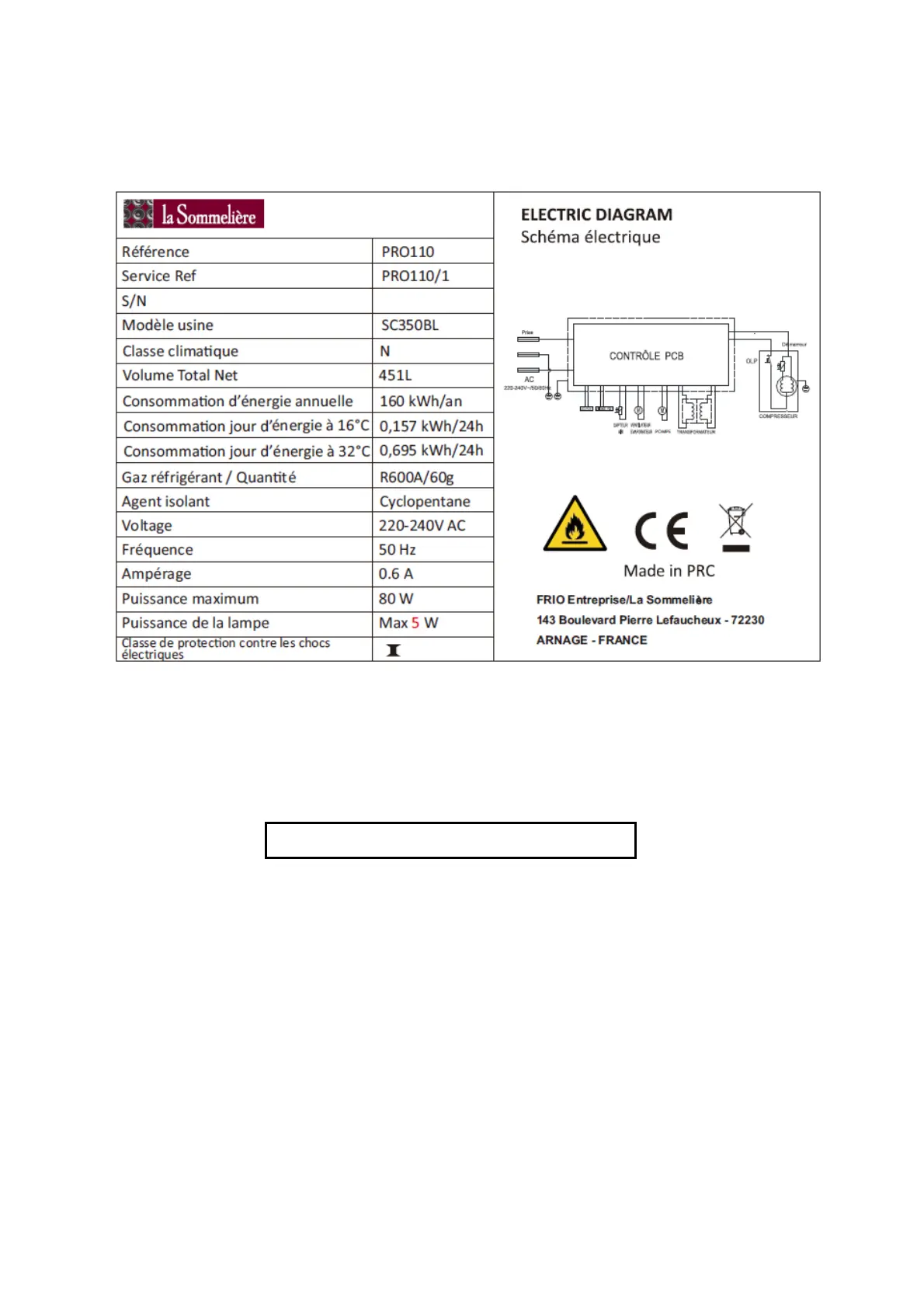 Nous vous conseillons de noter son numéro de série sur ce livret avant son installation, pour vous y référer si