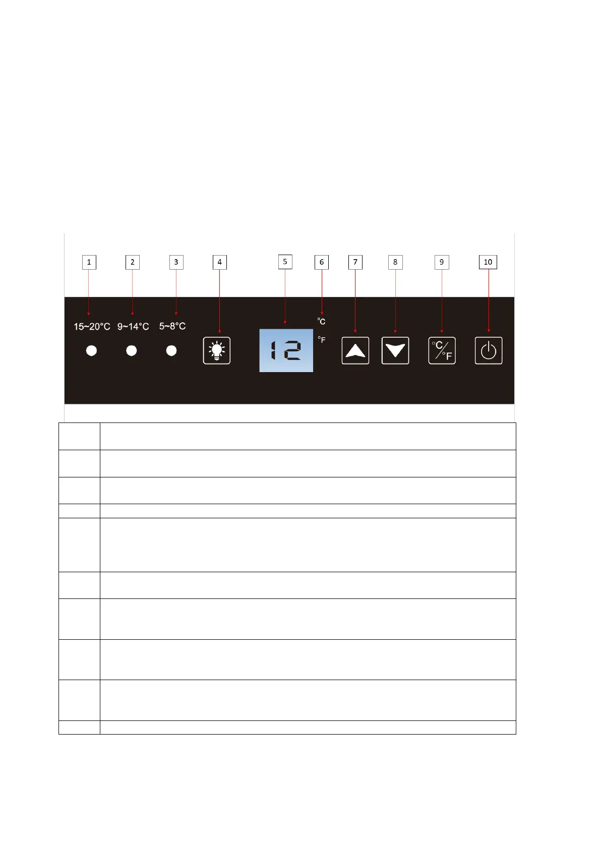 Appuyer sur ce bouton 3 secondes pour allumer ou éteindre la cave sans la débrancher.