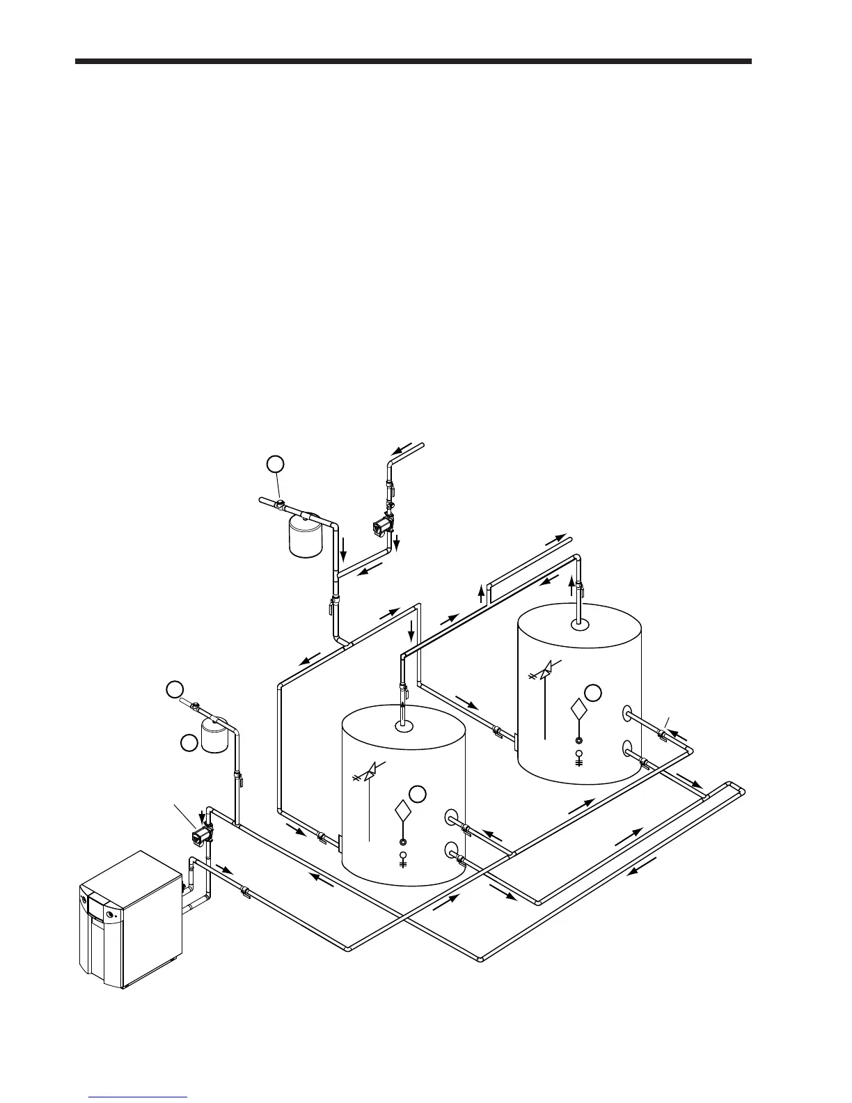 Fig. 18 - DHW Piping - One Heater, Two Vertical Tanks