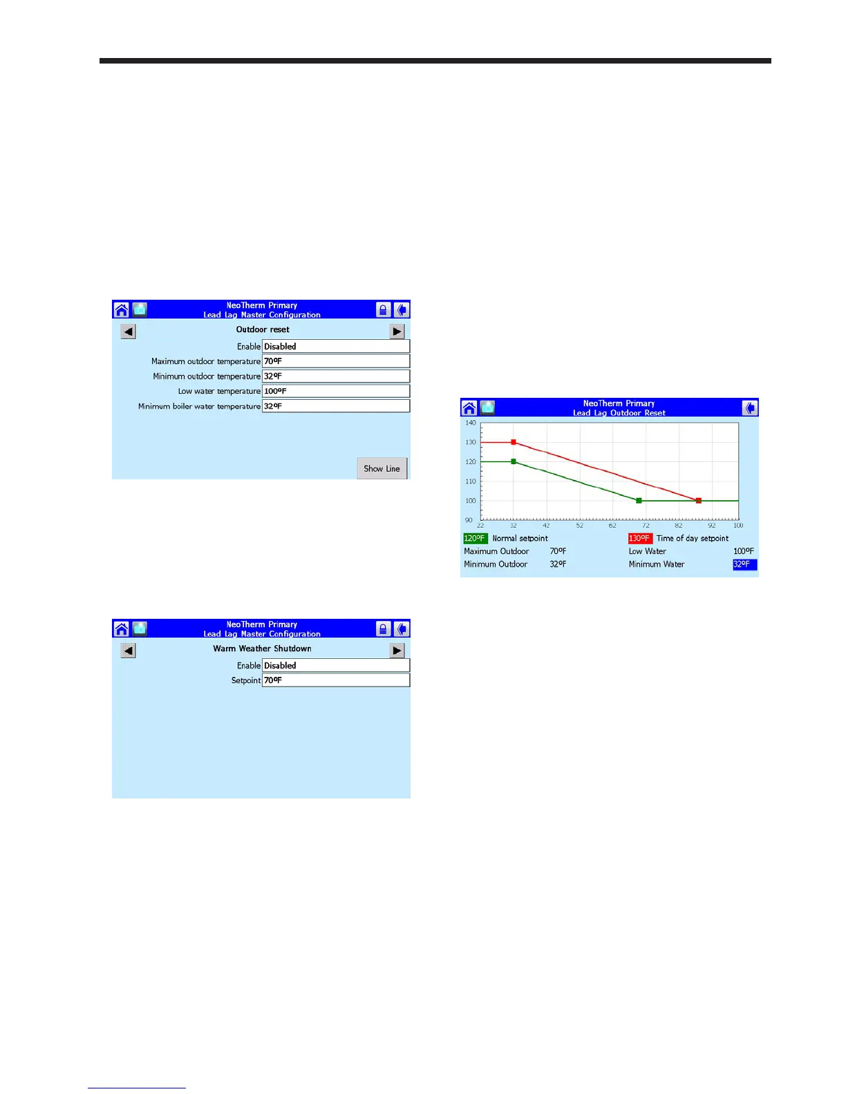 Select the Outdoor Reset Screen or the Warm Weather