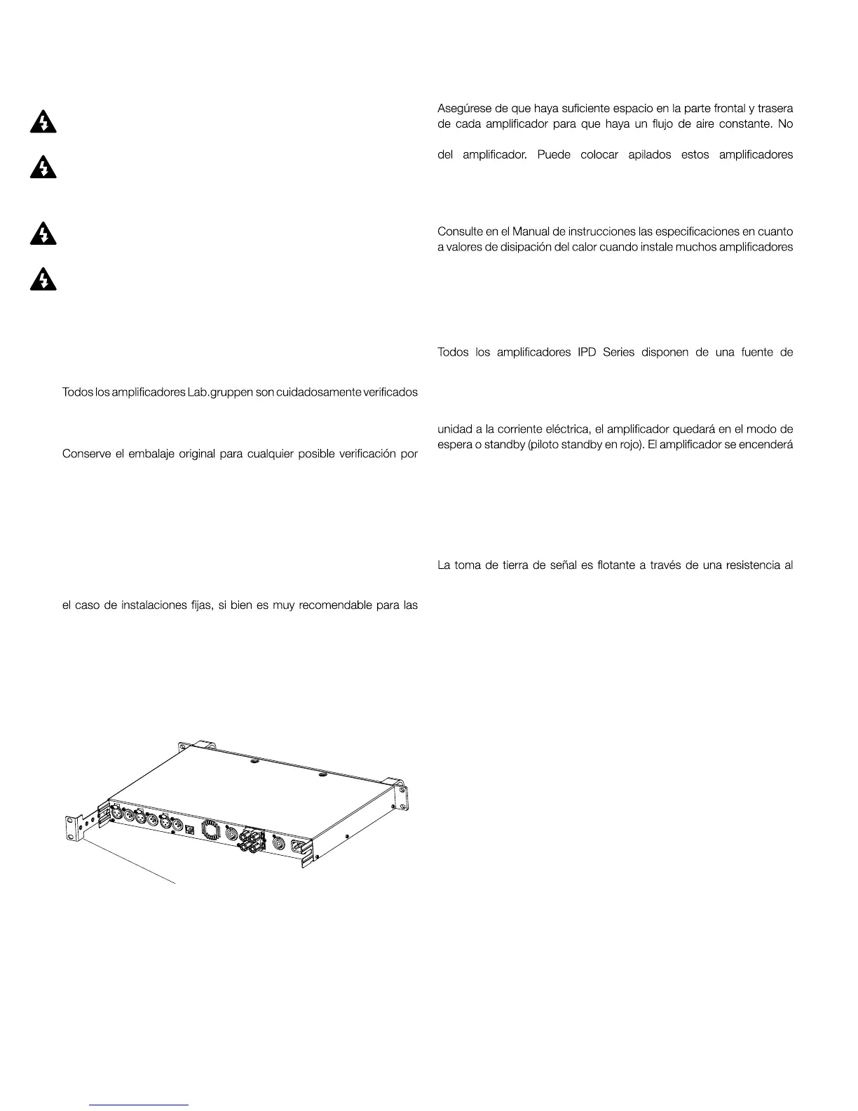 alimentación. Utilice conexiones de entrada balanceadas para evitar