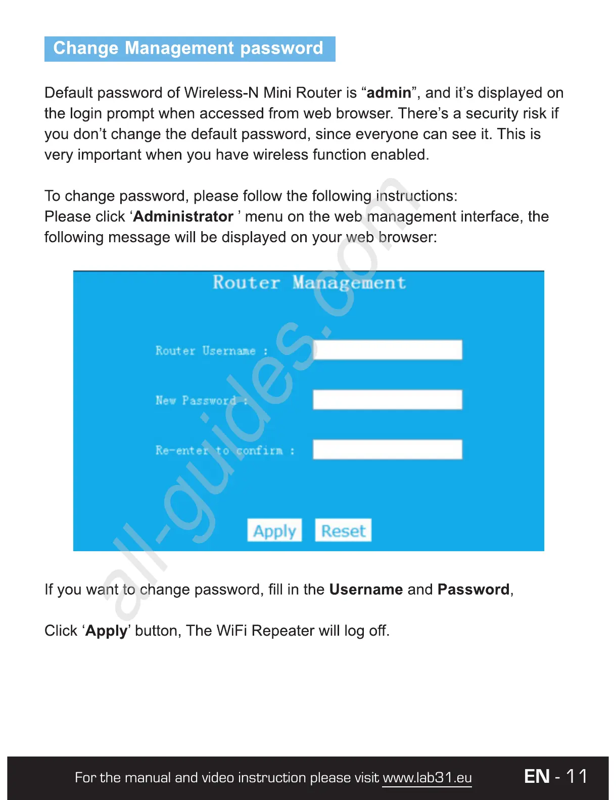 Lab31 LB-WFR01B - Management and Maintenance; Change Management Password
