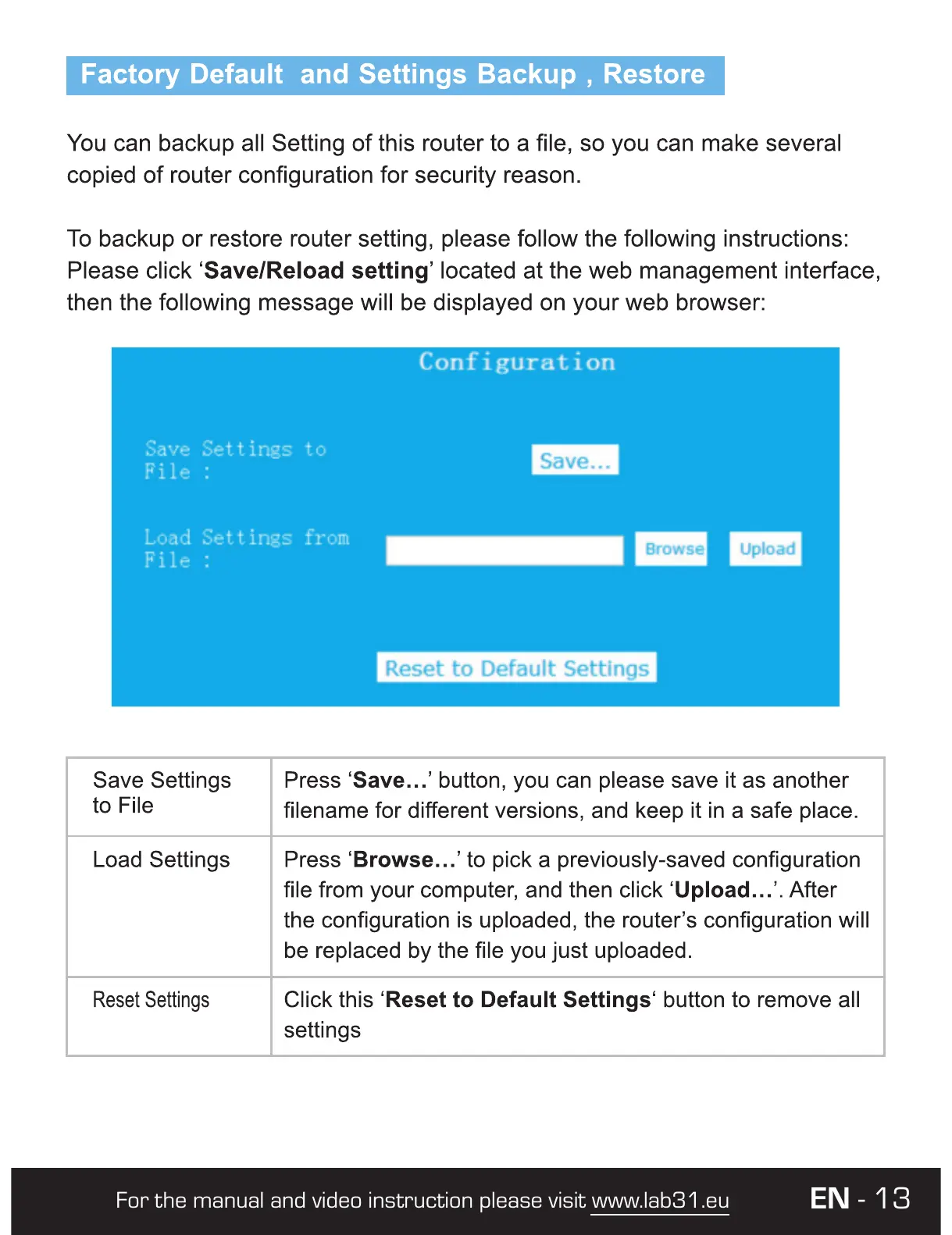 Lab31 LB-WFR01B - Settings Backup and Restore