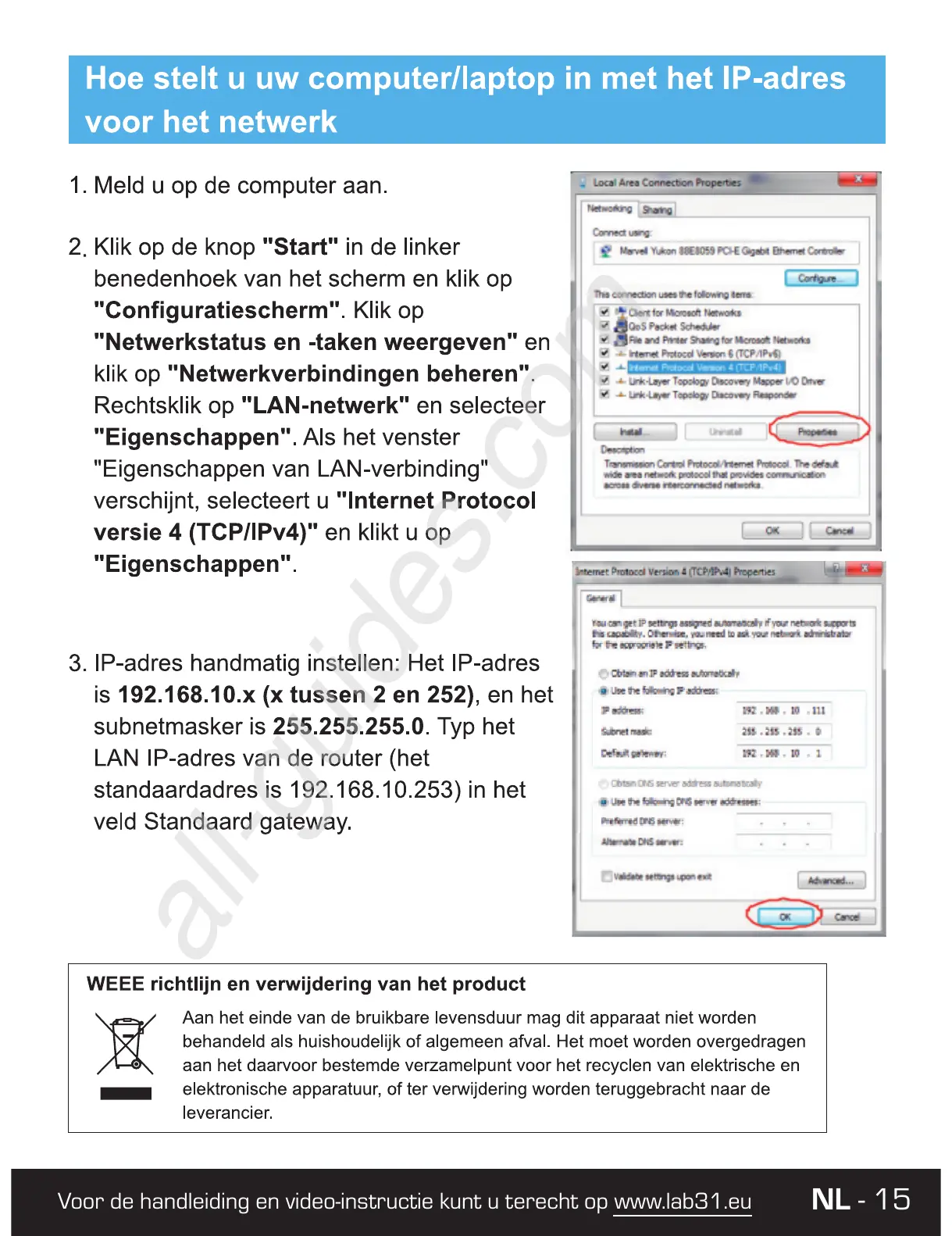Voor de handleiding en video-instructie kunt u terecht op www.lab31.eu