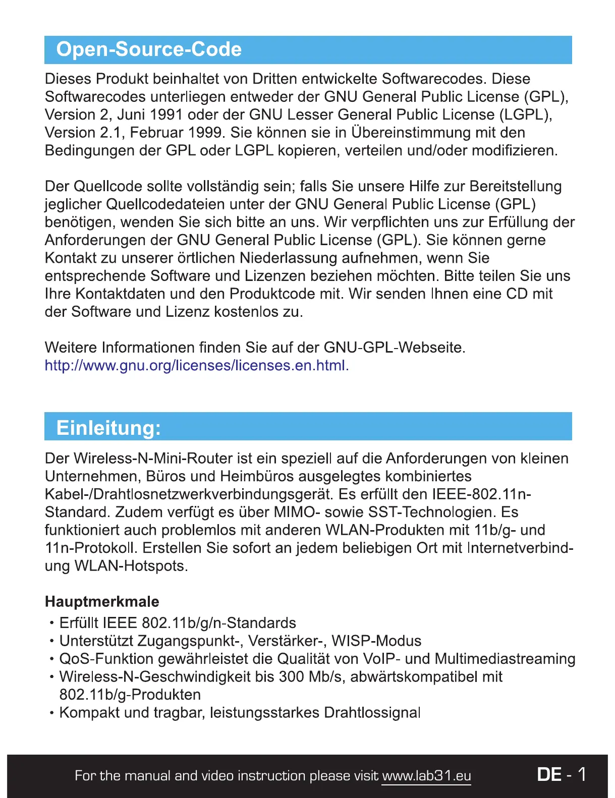 Für die manuelle und Video-Anleitung finden Sie www.lab31.eu