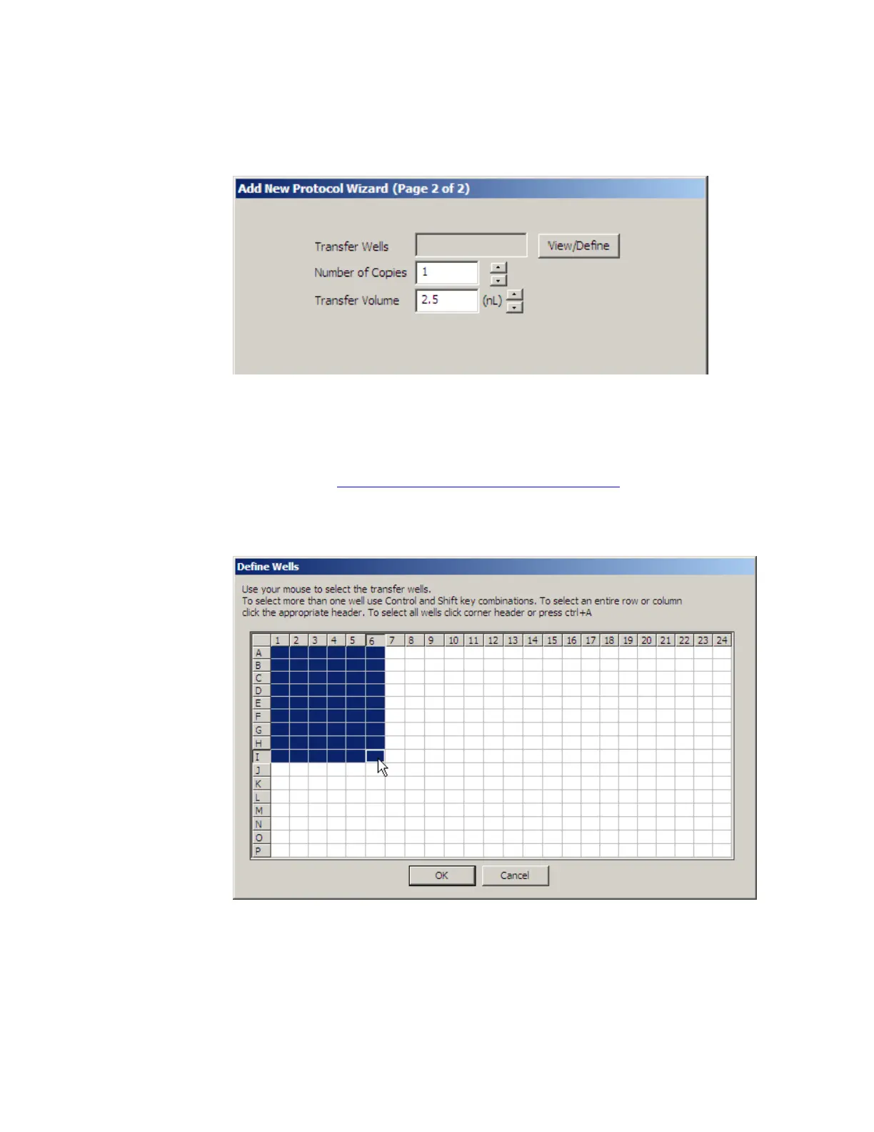 3. Transfer Wells: Click the VIEW/DEFINE button to select the wells to be