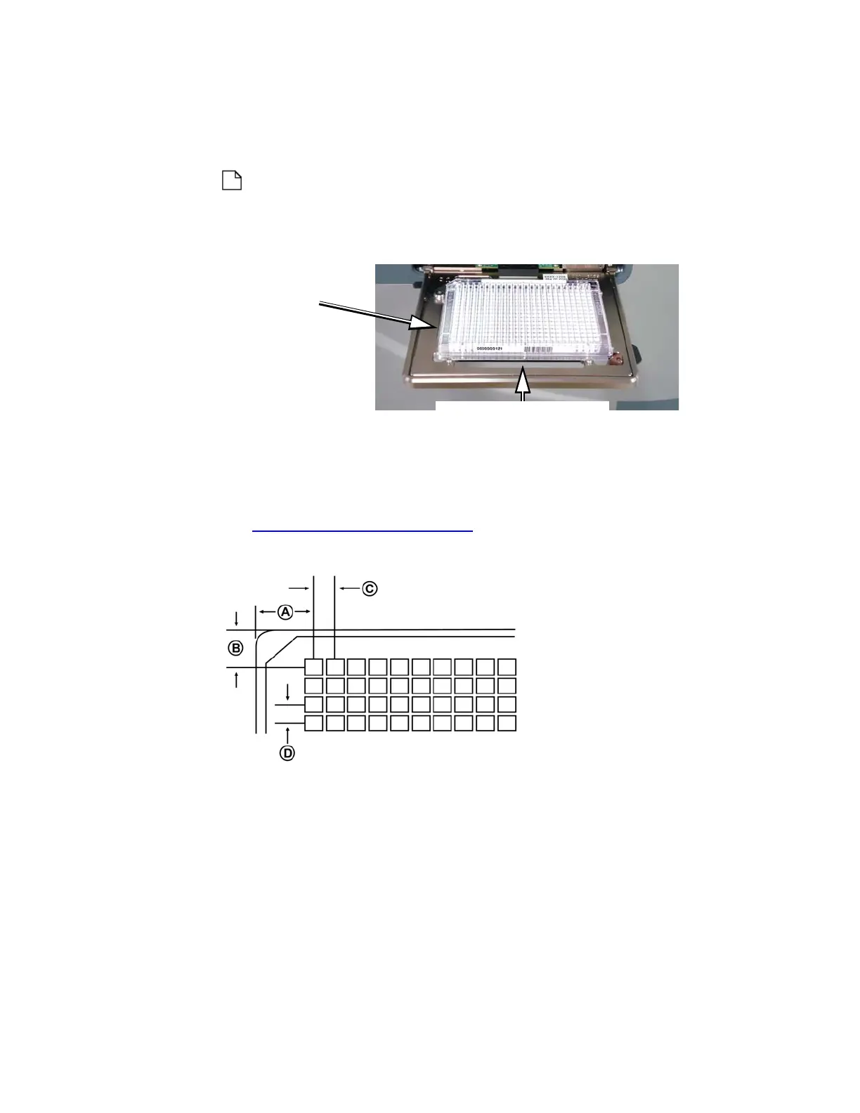 A and B: Well A1 X/Y offsets. Dimensions A and B locate the center of