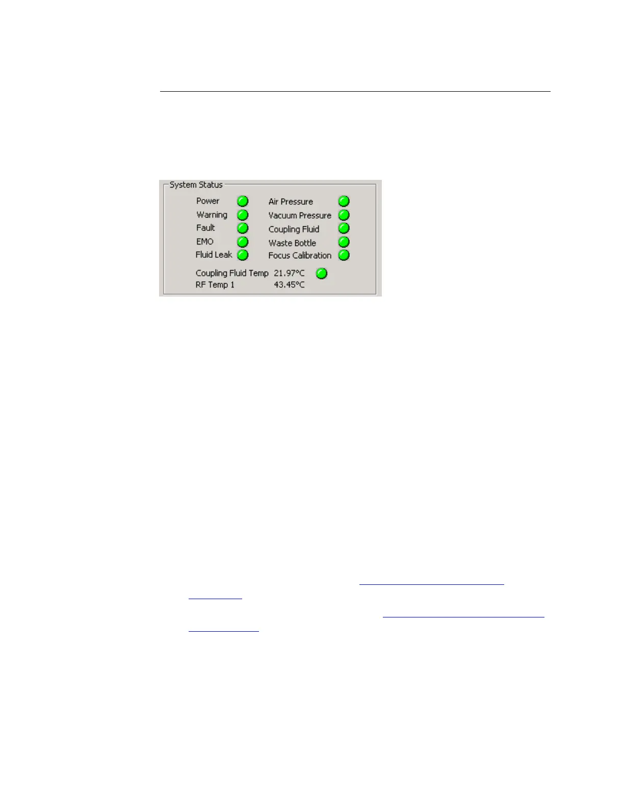 The coupling fluid bottle level is low. See “Coupling fluid indicator”