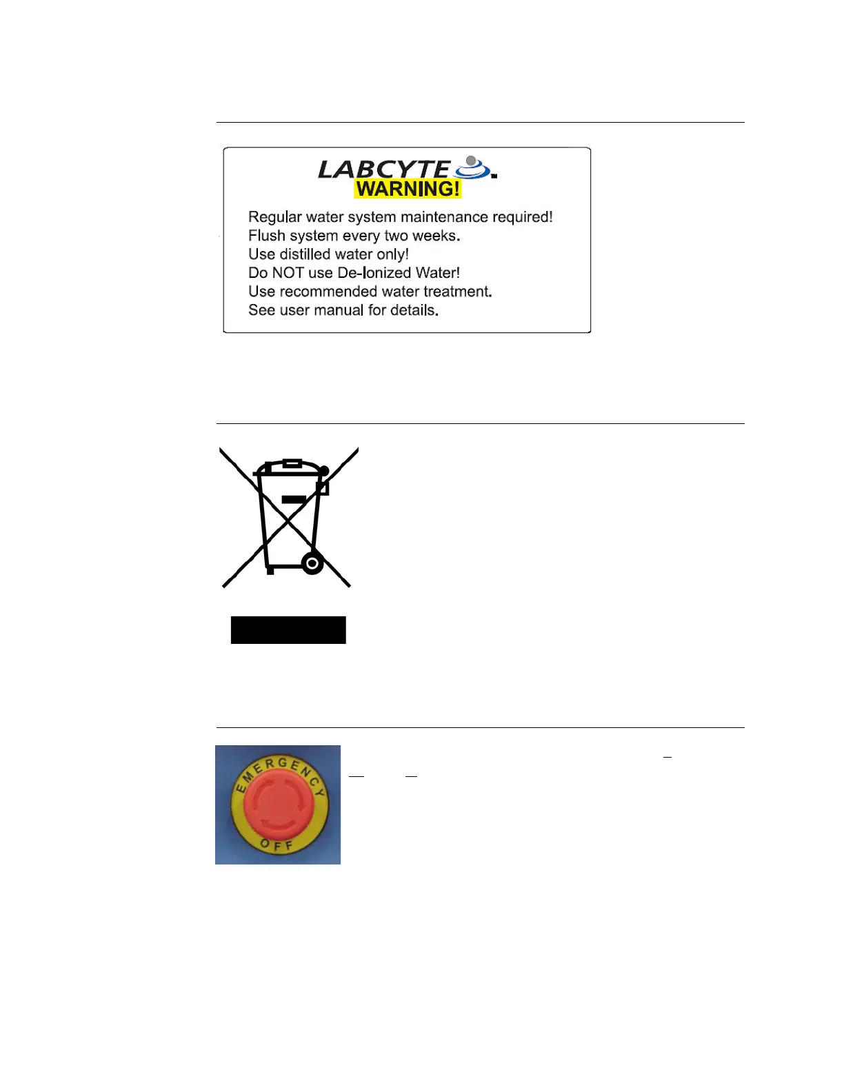 Labcyte Echo 520 - Emergency off Label; Water System Maintenance Label; WEEE Label